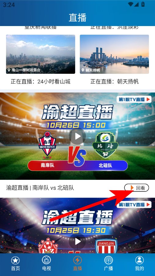 2、在直播界面,找到想要查看回放的直播,点击回看按钮,进入直播回放页面。