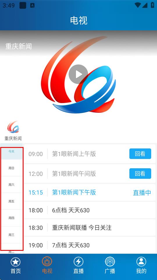 2、在电视页面,点击左侧日期选项,选择想看的日期。
