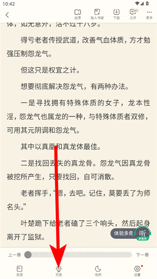 2、在书籍阅读页面,点击亮度选项,展开亮度调节条。