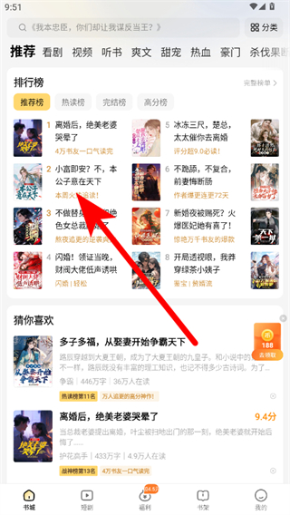 1、在得间小说书城页面,找到并点击想要查看目录的书籍,进入书籍详情页面。