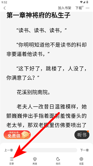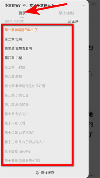 4、在目录列表中,即可查看书籍的各章节目录,点击章节可跳转阅读。