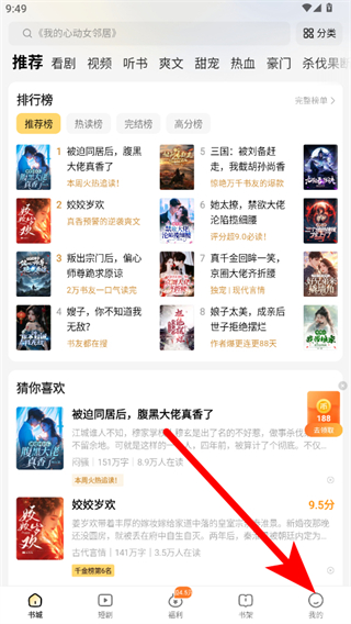 1、在得间小说书城页面,点击右下角我的选项,进入个人中心页面。