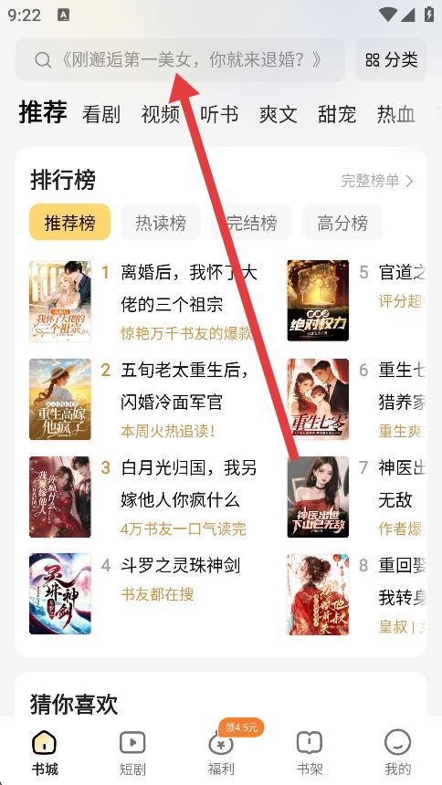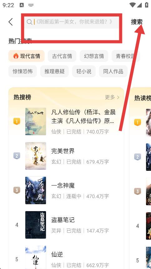 2、使用搜索功能可以精准的找到目标小说,输入书名或是作者名字即可找到书籍;