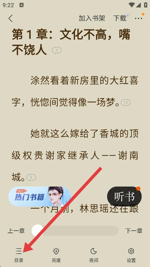 4、进入小说详情页后,点击左下角的目录即可查看目录。