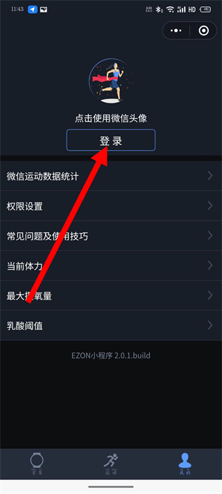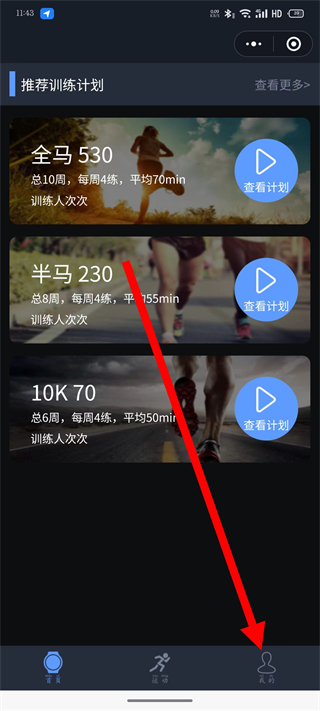 1、打开宜准跑步,点击底部我的,进入个人页面。