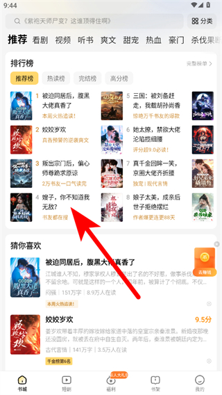 1、在得间小说书城页面,找到并点击想要调整字体大小的书籍,进入书籍详情页面。