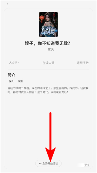 2、在书籍详情页面,点击左滑开始阅读选项,进入阅读界面。