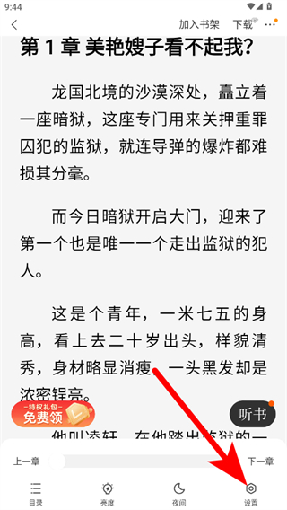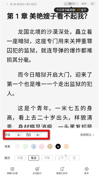 3、在阅读界面,点击设置选项,展开设置菜单。
