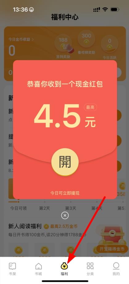 3、积累一定金额或金币后,点击福利中心的提现,进入提现界面,选择提现金额或兑换会员特权、代金券等,按提示操作完成提现或兑换,实现赚钱收益。