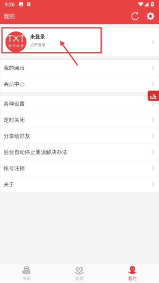 1、打开阅读类APP,点击底部我的选项,进入个人中心页面。