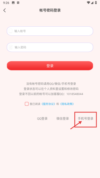 3、在登录方式选择页面,点击手机号登录选项,进入验证码登录信息填写页面。