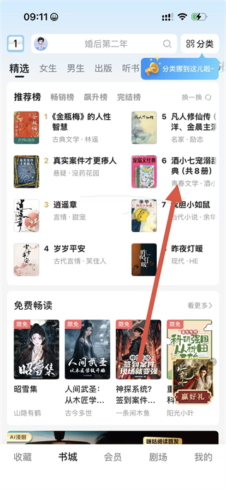 1、打开咪咕阅读应用,在书城界面中,选择一本想阅读的小说。