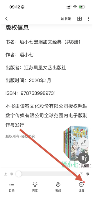 3、在阅读界面,点击设置选项,展开设置菜单。