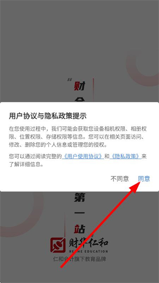 1、在用户协议与隐私政策提示弹窗中,点击同意,进入登录页面。