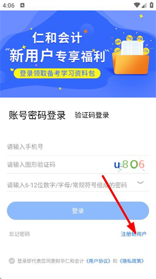 2、随后我们可以在登录页面,点击注册新用户,进入注册账号页面。
