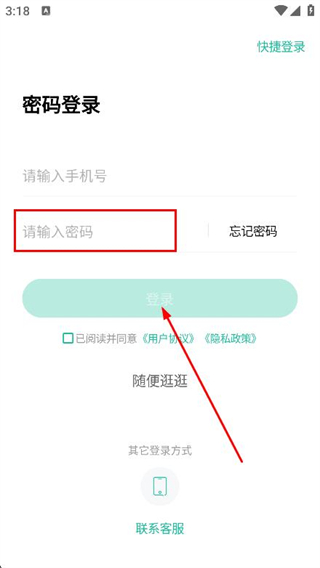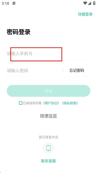 3、在密码登录页面的输入框中,填写手机号。