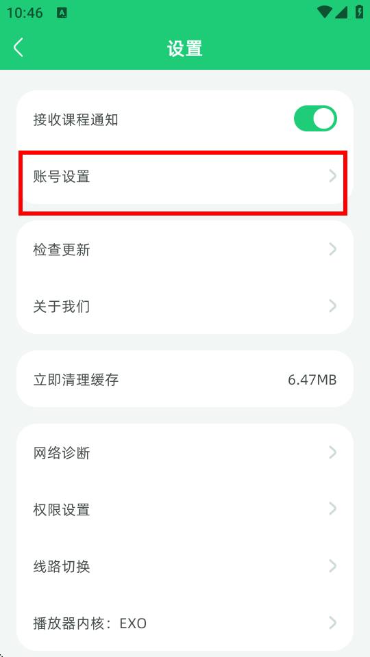 3、在设置页面里,点击账号设置选项进入账号设置界面。