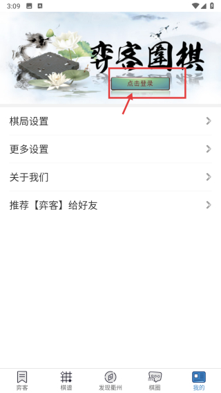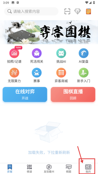 1、打开围棋类APP首页,点击底部我的选项,进入个人中心页面。