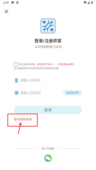 3、在登录方式选择页面,点击账号密码登录选项,进入账号密码登录信息填写页面。