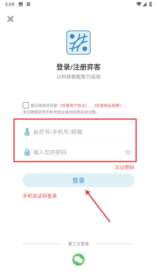 4、在账号密码登录页面,填写会员号/手机号/邮箱及密码,勾选同意协议后点击登录按钮,完成账号登录操作。