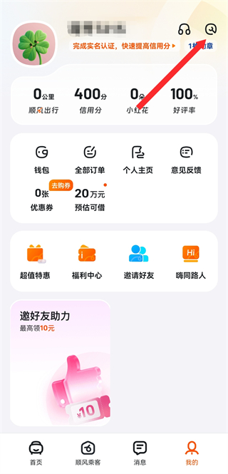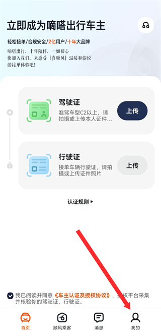 1、打开嘀嗒出行APP,点击底部导航栏的我的,进入个人页面。