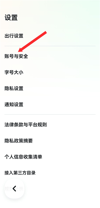 3、在设置的页面,点击账号与安全选项,进入账号与安全页面。