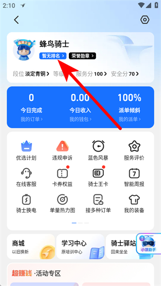 1、打开蜂鸟众包APP,点击左上角的个人图标,进入个人页面。