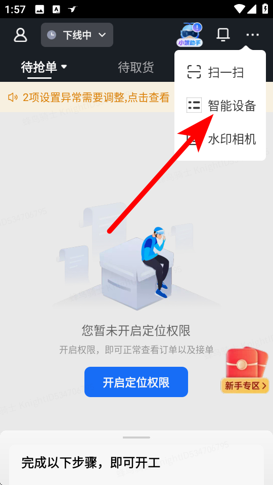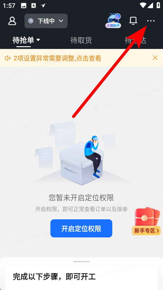 1、在蜂鸟众包首页,需要点击右上角三个点图标,弹出功能选项。