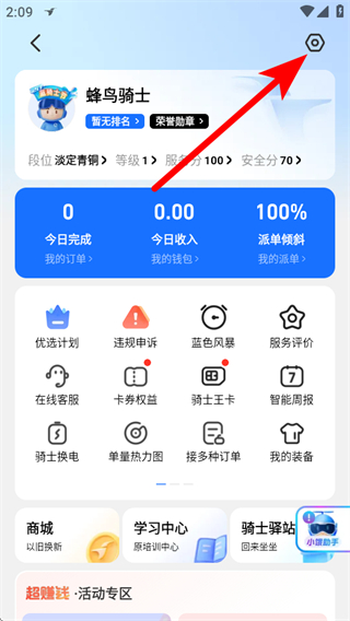 1、打开蜂鸟众包APP,点击左上角的个人图标,进入个人页面。