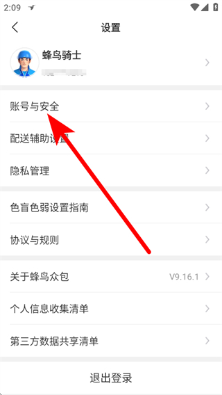 2、在设置页面,点击账号与安全按钮,进入账号与安全界面。