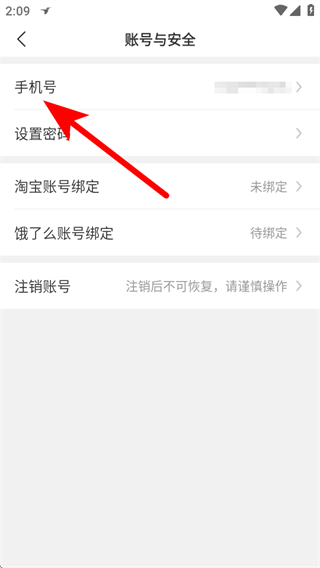 4、在账号与安全页面,点击手机号选项,按照页面提示完成换绑操作。