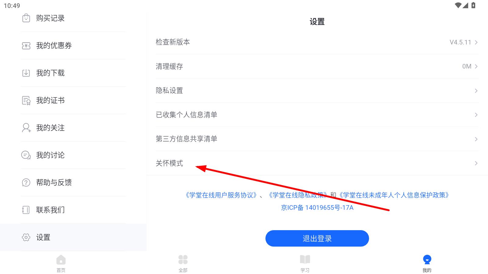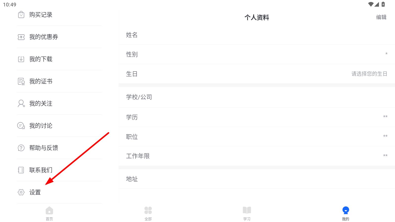 1、打开学堂在线APP,点击页面右下角的我的,进入个人页面。