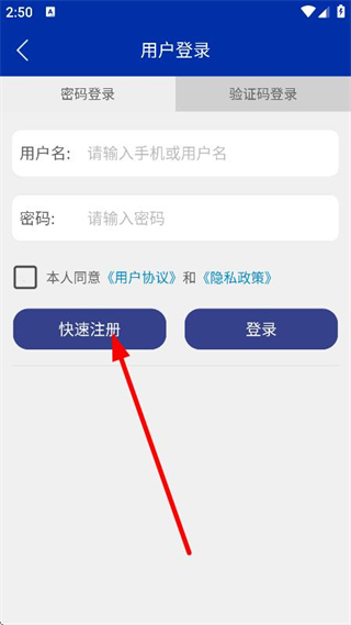 3、在用户登录页面,点击快速注册,进入用户注册页面。