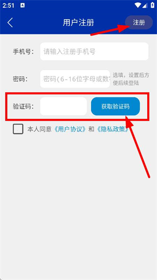 5、随后获取验证码并输入,点击注册,完成账号注册操作。
