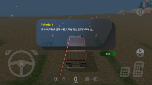 1、根据教程提示,将卡车开到传送带处,停在突出显示的停车位。