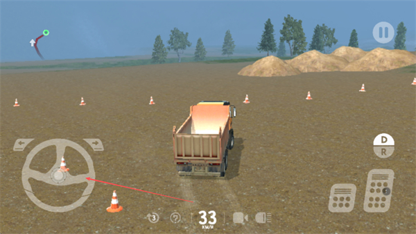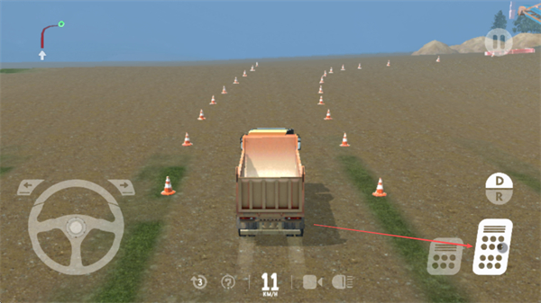 2、通过右侧按钮控制车速,沿着锥桶路线驾驶卡车前进。