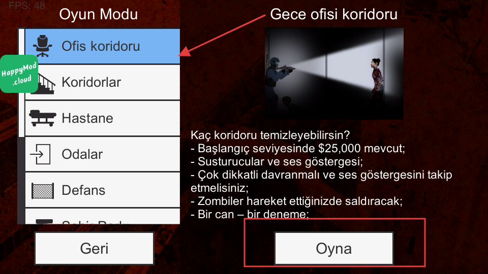 1、选择游戏模式,点击【Oyna】开始游戏,根据场景特点制定战斗策略。