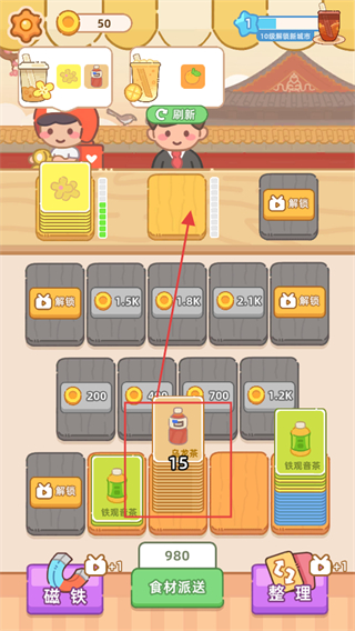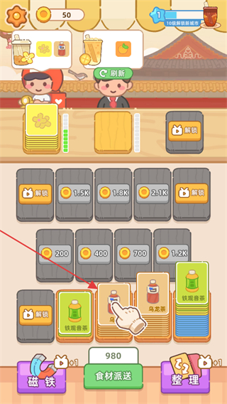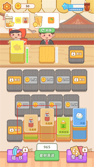 1、在茶饮经营游戏中,通过合并相同的茶饮材料,提升材料等级,为制作茶饮提供基础资源。