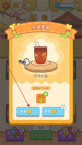 4、升级后可获得奖励(如可可红茶配方、金币等),领取奖励进一步提升经营能力,不断拓展茶饮业务,提升收益和等级。