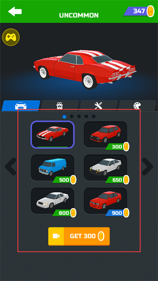 2、在车辆选择界面,根据金币数量和车辆属性,选择合适的车辆,不同车辆在赛道上的表现有所差异,可根据赛道类型选择。