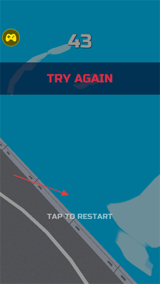 4、若游戏失败,点击“TAPTORESTART”重新开始,调整策略再次挑战,不断提升驾驶技巧和分数。