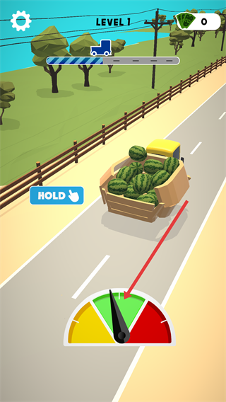 3、驾驶货车运输西瓜时,保持仪表盘指针在绿色区域,确保运输过程稳定。