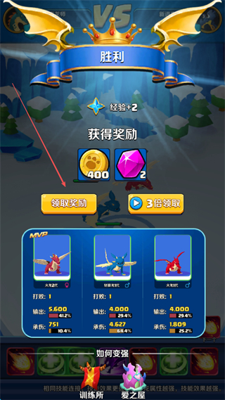 4、战斗胜利后,领取经验、金币、宝石等奖励,用于升级龙、解锁新技能或培养更强的龙阵容,继续挑战更高难度的关卡。