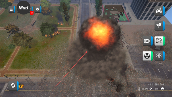 3、选择核爆等灾害工具,在城市区域释放,引发大范围爆炸,提升破坏分数。