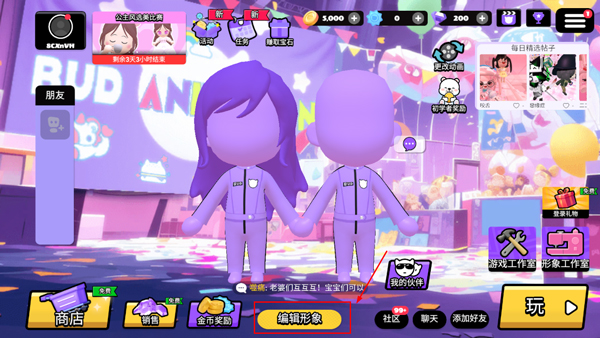 1、首先打开bud,进入游戏后,点击下方编辑形象选项;