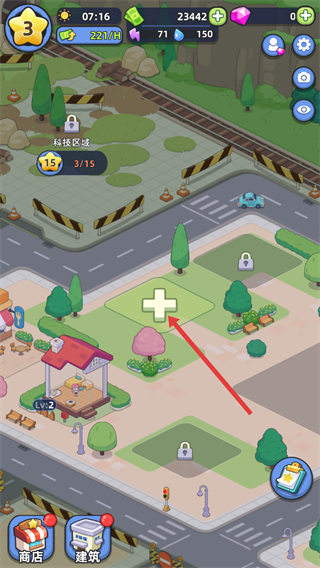 1、在游戏界面中,点击带加号的空地可进入建造界面,准备建造新建筑。