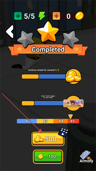 4、关卡完成后,可点击免广告双倍领取金币奖励。