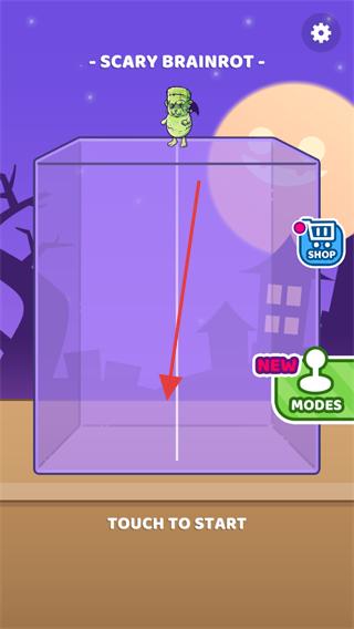 1、点击“TOUCHTOSTART”进入《ScaryBrainrot》游戏,开启恐怖主题的收集与合并挑战。