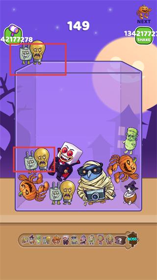 2、在游戏中,收集相同的怪物形象(如灯泡怪物),当数量足够时可进行合并,升级为更高级的怪物,提升游戏分数。