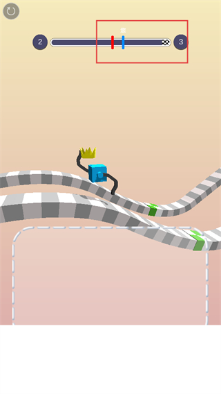 2、进入关卡后,绘制线条为蓝色方块构建攀爬路径,并关注上方的对手位置。